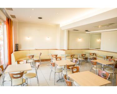 Für eine angenehme Raumtemperatur sorgt die Klimaanlage. Zusätzlich finden auch im Außenbereich noch ca. 30 Personen einen gemütlichen Sitzplatz in der Sonne.