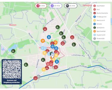 Sämtliche Einkaufsmöglichkeiten des täglichen Bedarfs, Apotheken, Ärzte, Banken sowie diverse Gastronomiebetriebe sind in fußläufiger Entfernung bequem erreichbar und werden von den umliegenden Gemeinden und Städten gerne genützt.