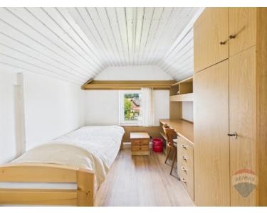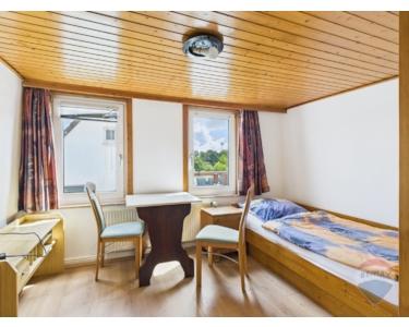 Im Obergeschoss befinden sich zwei Wohnungen mit ca. 97 m² und 49 m² Wohnfläche. Das Dachgeschoss bietet rund 55 m² Personalräume mit vier Zimmern und Bad. Eine weitere ca. 37 m² große Wohnung liegt im zweigeschossigen Flachdachanbau.