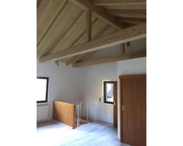 Hier wurde 2016 ein komplett neuer, gedämmter Dachstuhl errichtet, eine Heizungsleitung vom Haupthaus verlegt, sowie die Bodenaufbauten erneuert, gedämmt und abgedichtet, sowie eine diffusionsoffene Dämmung der Rückwand zum Hang ausgeführt.