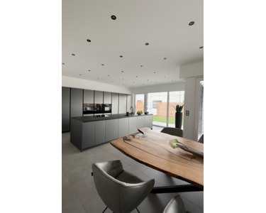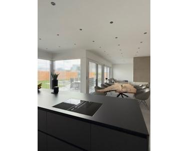 Kücheninsel 4x1,15m ausgestattet mit Bora 2.0 Induktionsfeld mit eingelassenem Bora Dunstabzug, Bosch Geschirrspüler, Quooker Pro3 Flex schwarz für gekühltes, Sprudel oder kochendes Wasser aus einem Hahn, Keramikplatte 12mm massiv mit flächenbündigen Steckdosen und eingelassenem Spülmittelspender