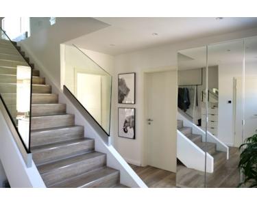 Im Obergeschoss erwarten Sie zwei Kinderzimmer, ein Büro, ein weiteres Tageslichtbad mit Dusche sowie das großzügige Elternschlafzimmer mit begehbarem Ankleidezimmer, eigenem Bad mit Whirlpool Wanne und Dusche, Sauna und Balkon.