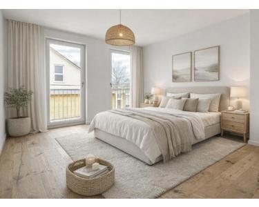 - Großzügige, bodentiefe Fenster, die für lichtdurchflutete Räume und eine offene Atmosphäre sorgen