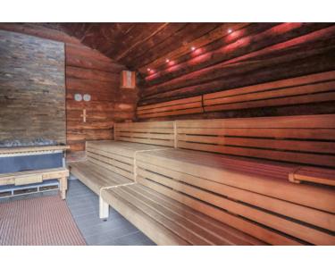 •KELO-Blockhaus-Sauna (95°C) – mit dem aromatischen Duft 100-jährigen KELO-Holzes vom Polarkreis