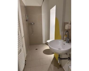 Das neu ausgestattet Bad mit begehbarer ebenerdiger Dusche ist ebenfalls barrierefrei - klein aber fein!