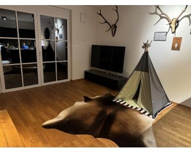 Kaum genutzte 3 Zimmerwohnung im Herzen von Garmisch. Das liebevoll eingerichtete Objekt besitzt 3 Zimmer (Wohnzimmer mit Küche, Schlafzimmer und Kinder oder Hobby Zimmer. Begehbare Dusche mit WC und Waschbecken, eine Terrasse und eine Grünfläche. Mit Blick auf den Kramer aus dem Schlafzimmer und mit Zugspitzblick vom Wohnzimmer aus. Die Küche ist mit SIEMENS Geräten (Kühlschrank, Spülmaschine, Backofen und Mikrowelle) ausgestattet, der Herd mit integrierter Absaugung ist von BORA. Die Wohnung besitzt ein Belüftungssystem von Vento. Die Gemütlich Geschnittene halb überdachte Terrasse bietet Platz zum Entspannen nach einer schönen Wander oder Rad tour. Hier gibt es auch die Möglichkeit sich auf den frisch vom Hausmeister gemähten Rassen aus zu ruhen.