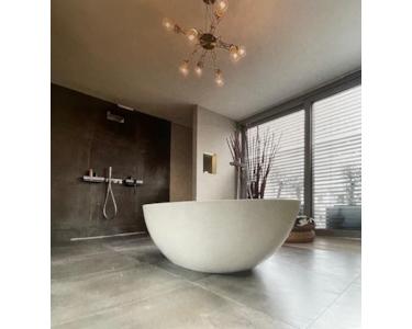 Der Souterrain teilt sich in einen technischen- und einen weiteren Living-Bereich mit ebenerdigen Duschbad, ebenfalls mit fast unsichtbarem Ablauf, italienischen Fliesen im XXL-Format und – bedingt durch begehbares Glas - tageshellem und vielseitig nutzbaren Hobbyraum, dem größten Raum des Hauses. Der Hauswirtschaftsraum mit Hochglanzeinbauschränken und Miele-Geräten setzt Zeichen und selbst der Technikraum ist durchdesignt, ohne störende Leitungen und reduziert auf das Wesentliche. Ganz im Sinne von Mies van der Rohe.