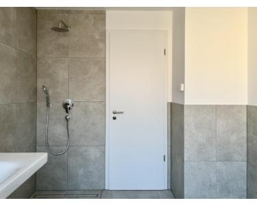 • Modernes Bad mit Badewanne und bodentiefer Duschen