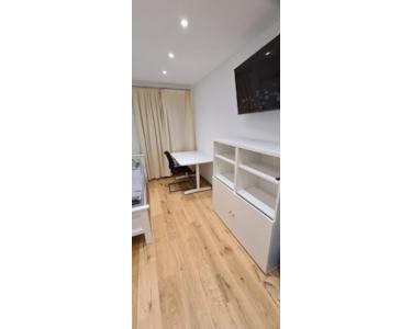 Die Zimmer sind komplett möbliert, es wird in einer 4 WG gelebt. Jedes Zimmer hat einen TV von Sharp, einen Schreibtisch und ein Bett.