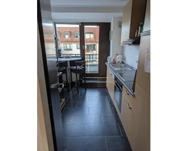 Alle Räume sind vom Flur aus zu erreichen. Die Küche ist mit anthrazit-farbenen Feinsteinzeug-Fliesen ausgestattet. Der Fliesenspiegel ist modern in weiß / anthrazit gehalten. Die Küche verfügt über einen kleinen, schnuckeligen Balkon.