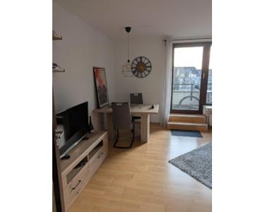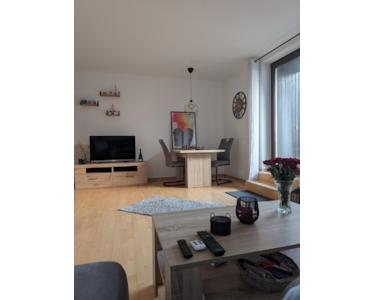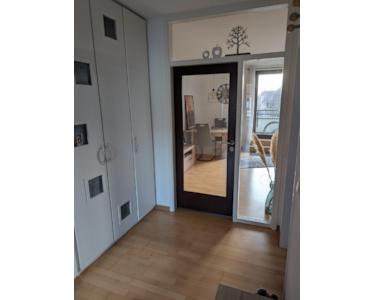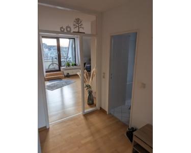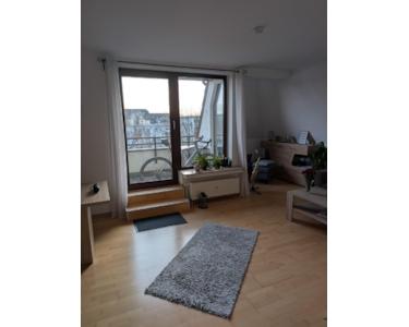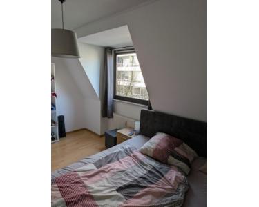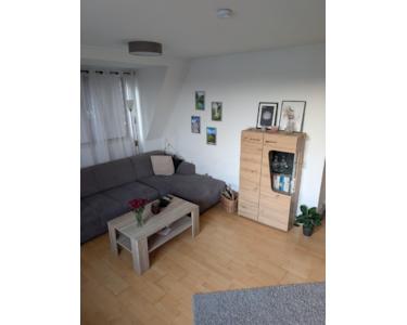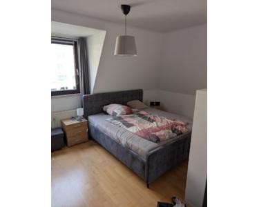 Im großzügigen Wohnzimmer findet man Schrägen, die nicht stören, aber die Wohnung umso gemütlicher wirken lassen. Von hier aus gelangt man auf die nach Süden ausgerichtete Loggia. Dort ist zusätzlich eine praktische Kammer, in der im Winter Ihre Balkonmöbel, Blumenkästen etc. Platz finden.