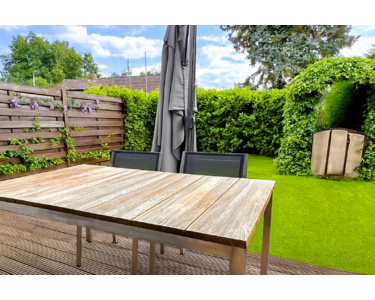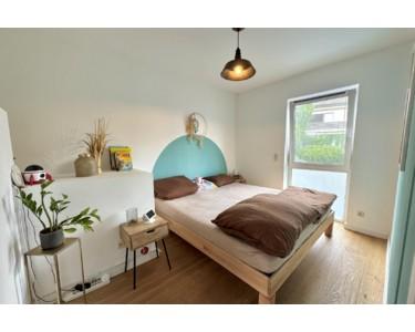 Auf zwei Ebenen bietet die modern ausgestattete Wohnung ein durchdachtes Raumkonzept. Der große Wohn-/Essbereich mit offener Küche im Erdgeschoß schafft ein großzügiges Raumgefühl in gemütlicher Atmosphäre. Große Falttüren lassen sich komplett zur ebenerdigen Terrasse hin öffnen. Und mit Blick auf den eigenen idyllischen Garten in Südausrichtung können Sie die Sonne entspannt bis in die Abendstunden genießen.