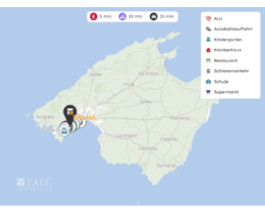Der nächste Flughafen, Palma de Mallorca, ist etwa 30 Autominuten entfernt, was die Lage auch für internationale Reisende attraktiv macht.
