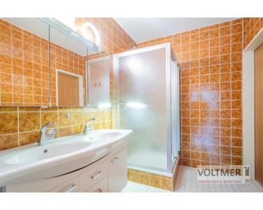 - Badezimmer mit Doppelwaschbecken & Dusche