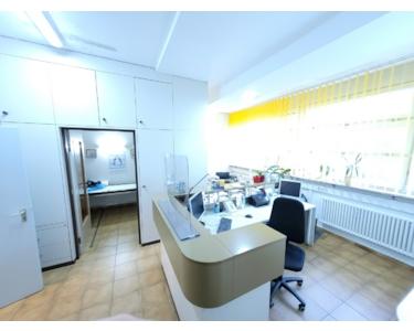 Die zum Verkauf stehenden Büroräume mit einer Nutzfläche von 116,4 qm, die zuletzt vom Eigentümer als Arztpraxis genutzt wurden, befinden sich in der ersten Etage.
