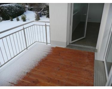 Die Balkone verfügen über einen Holzwerkstoffbelag. Balkone und Terrasse sind durch eine massive Trennwand voneinander getrennt. Das bedeutet für Sie, jeder bleibt bei seinem Gespräch ungestört. Die Balkone haben Geländer aus Edelstahl.