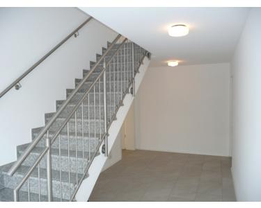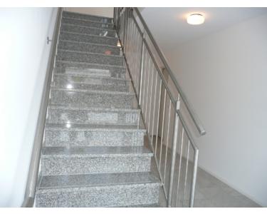 Das Treppenhaus hat eine Treppe in Granitausführung mit doppelseitigen Handlauf in Edelstahl.
