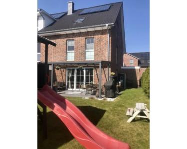 Der Garten mit einer großzügigen Terrasse, der Terrassenüberdachung mit 8mm Sicherheitsglas und elektronischer Unterbaumarkise, abschließbarem Gartenschrank und einem Spielhaus mit zwei Schaukeln, Rutsche und Sandkasten ist ein kleines Paradies für Groß und Klein. Angrenzend ans Haus finden sie einen Kellerersatzraum, in dem Fährrader etc. genügend Platz finden. Direkt vor dem Haus befinden sich zwei PKW-Stellplätze.