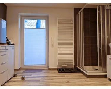 In dem Bereich des Übergangs beider Häuser ist derzeit ein HWR für beide Immobilien untergebracht mit der Möglichkeit, 2 Waschmaschinen und 2 Trockner anzuschließen. Ebenso ist hier eine weitere Dusche untergebracht.