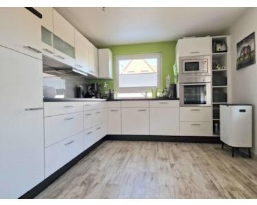Eine tolle Küche, ein geräumiges Wohnzimmer und ein Gäste-WC finden Sie hier vor.