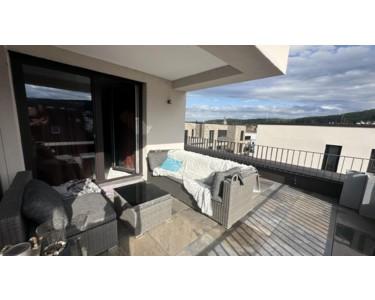 Vom Wohn-Essbereich, Küche, Haupbad als auch vom Schlafzimmer aus gelangt man auf die umlaufende Dachterrasse.