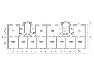 In zwei gepflegten Mehrfamilienhäusern entstehen derzeit 16 moderne Wohnungen mit ca. 56,75 m² Wohnfläche. Jede Einheit wird vollständig saniert und überzeugt mit einem klaren, offenen Grundriss, viel Tageslicht und einer hochwertigen Ausstattung.