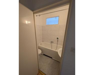 Der Wohnraum ist hell und freundlich gestaltet und verfügt über zwei große französische Panoramafenster, die für eine angenehme Lichtatmosphäre sorgen. Ein separater Hauswirtschaftsraum bietet zusätzlichen Stauraum. Ergänzt wird das Raumangebot durch eine Einbauküche sowie ein Badezimmer mit Badewanne.
