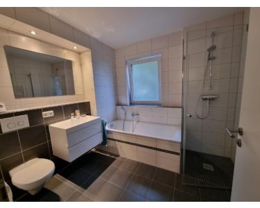 Hochwertige Ausstattung: Einbauküche, Einbauschrank im Flur, Fußbodenheizung, Eichenparkett, Bad und Terrassentür elektrische Rollläden, Rest manuell, Lüftungsanlage, Bad mit begehbarer Dusche, Badewanne und Fenster, zusätzlicher Zugang vom Schlafzimmer in den Garten und Gartenhaus.