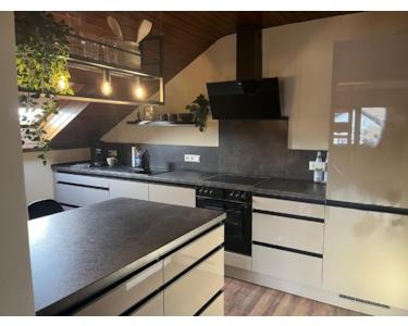 • Die neu eingebaute Küche beeindruckt mit ihrer hochwertigen Ausstattung und ihrem modernen Design. Sie beinhaltet: Küchenarmatur, Spülbecken, Abfallsystem, Geschirrspülmaschine, Elektrokochfeld, Einbau-Herd, Dunstabzug mit Abluft-/Umluftbetrieb und eine Einbau-Kühl-Gefrierkombination sowie jede Menge Stauraum, viel Arbeitsfläche und eine Esstheke. Alle E-Geräte sind von NEFF.