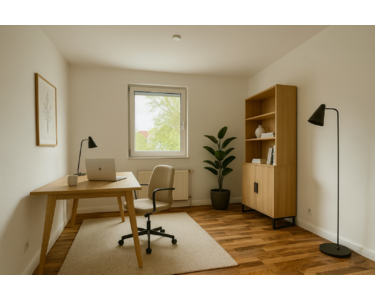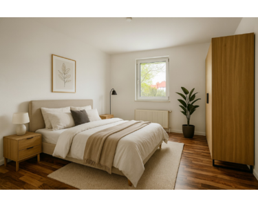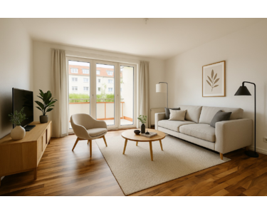 Die Wohnung überzeugt durch einen einheitlichen, modernen Bodenbelag in dunkler Holzoptik, frisch gestrichene weiße Wände sowie eine durchdachte Raumaufteilung. Neben dem großzügigen Wohnzimmer stehen zwei weitere helle Zimmer zur Verfügung.