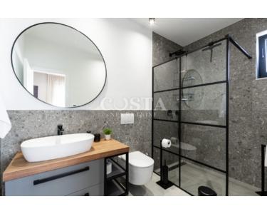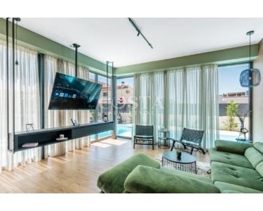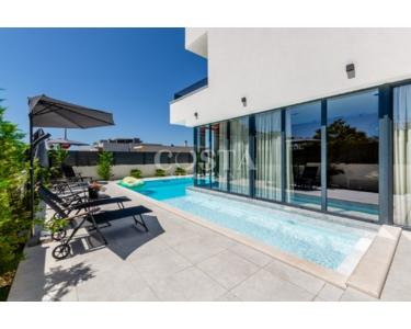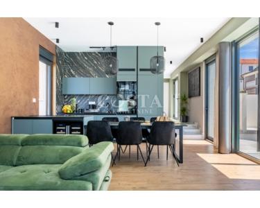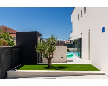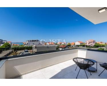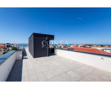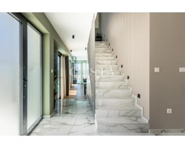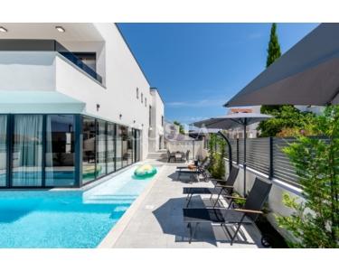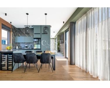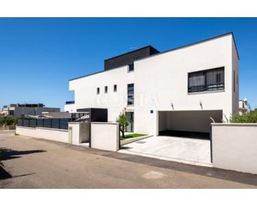In Vrsi bei Zadar steht eine luxuriöse Villa mit Pool zum Verkauf. Das Anwesen mit einer Wohnfläche von 195 m² befindet sich auf einem 411 m² großen Grundstück und besteht aus Erdgeschoss, Obergeschoss und Dachterrasse. Das modern eingerichtete Erdgeschoss verfügt über ein Wohnzimmer, eine Küche mit Essbereich, ein Gäste-WC und eine Garage. Im Obergeschoss befinden sich drei Schlafzimmer mit jeweils eigenem Bad und eine Terrasse mit beeindruckendem Meerblick. Auf der Dachterrasse erwarten Sie eine Sommerküche und ein Whirlpool. Im komplett umzäunten Innenhof der Villa befinden sich ein Pool, ein Garten und zwei zusätzliche Parkplätze. Das Anwesen ist vollklimatisiert und verfügt über Fußbodenheizung.