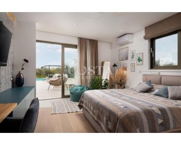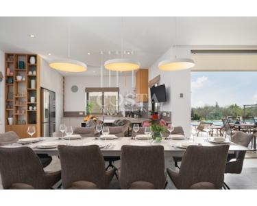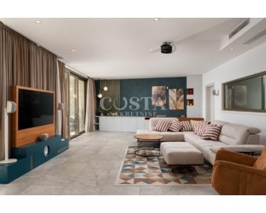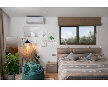 Die Villa ist mit modernster Technik ausgestattet, vollklimatisiert und verfügt über eine Fußbodenheizung mit Wärmepumpen. Für die Böden wurden Parkett und Keramikfliesen verlegt. Die Fenster und Türen sind aus Aluminium, und das geräumige Wohnzimmer verfügt über Deckenklimaanlagen. Eine große Glaswand sorgt tagsüber für viel Tageslicht.