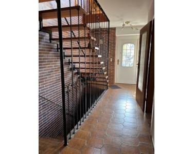 Im Erdgeschoss betreten Sie das Haus und kommen in einen geräumigen Flur, von dem die Treppe ins Dachgeschoss und den Keller abgehen.