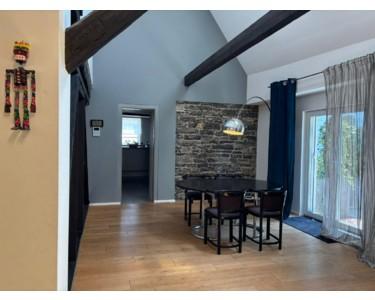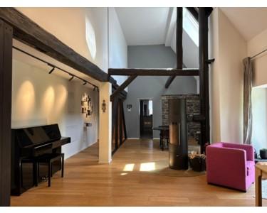 Dieses Haus erzählt Geschichte – aber es lebt im Heute: Natursteinmauerwerk, sichtbares Gebälk und zugleich eine Ausstattung, die Alltag komfortabel macht. Besonders eindrucksvoll ist das große Wohnatelier/Wohnzimmer (ca. 12 × 5 m, ca. 4,5 m Höhe) – ein Raum für Licht, Kreativität, Feste und dieses besondere „Wow“, das man kaum nachbauen kann.