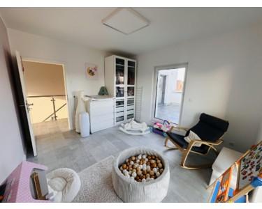 Im Obergeschoss befinden sich zwei Kinderzimmer, ein Schlafzimmer mit separater Ankleide, zwei moderne Badezimmer (komplett gefliest) sowie ein separater Wäscheraum mit Waschküche.
