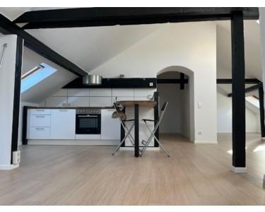 Diese hochwertig modernisierte 1-Zimmer-Dachgeschosswohnung befindet sich im 4. Obergeschoss (ohne Aufzug) eines gepflegten Mehrfamilienhauses und bietet auf ca. 62 m² ein modernes und zugleich gemütliches Wohnambiente.