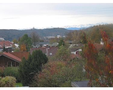 -> Vom Gaubenfenster im DG aus genießen Sie einen außergewöhnlichen Panoramablick nach Süden auf das Kloster Andechs und die Alpenkette mit der Zugspitze (siehe Foto).