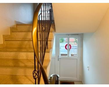 Ein besonderes Highlight ist der große, vollständig eingezäunte Garten, der ideale Voraussetzungen für Familien mit Kindern oder für Haustierhaltung bietet. Vom Obergeschoss aus besteht über eine Außentreppe ein direkter Zugang zum Garten, was die Nutzung besonders komfortabel macht.