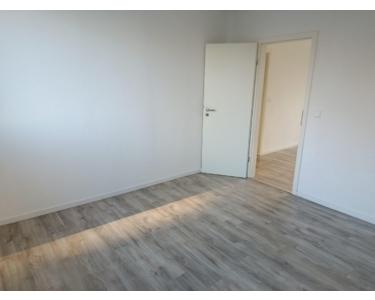 Helles Ambiente: In der gesamten Wohnung (auch in der Küche) wurde ein modernes, hellgraues Laminat verlegt. Das sieht freundlich aus und ist sehr pflegeleicht (keine hohen Türschwellen).