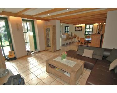 Fußbodenheizung, Fliesen, solide einbruchsichere Merantifenster, Fernwärme, Fassade in Feldbrand Verblendmauerwerk, Außenwände in Kalksandstein, tragende Innenwände in Kalksandstein, nicht tragende Wände in Ständerwerk/Gipskartonplatten, Decken in Stahlbeton örtlich vergossen und unterseitig verputzt, Wohnzimmer EG Dekobalkenlage im Deckenbereich, Tonpfannendach, massive Außentüren in Eiche u. Metall, exkl. Einbauküchen, Dachgeschoßbereiche in sichtbaren Sparren, 4 Garagen, 2 Carports, 7 PKW Stellplätze, robustes individuell geschmiedetes Eingangstor, bunter großzügiger Garten mit zahlreichen Gestaltungsmöglichkeiten, Schwimmteich, Sauna, Aufenthaltsraum, optionale Pferdehaltung, nahe liegende Pferdeweide, ca. 3,3 Ha Pferdewiesen können dazu gepachtet werden, Photovoltaikanlage 7,4 kWp aus 2005, verkauft werden die Wohnungen möbliert