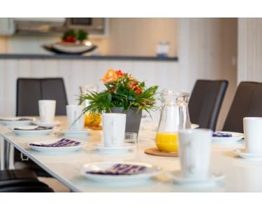 Das Platzangebot erlaubt eine Vermietung an bis zu 10 Personen. Der skandinavische Baustil, mit hellem Holz und großzügiger Deckenhöhe im Wohn-/Essbereich mit offener Küche sorgen für eine gemütliche Atmosphäre. Der Kaminofen und das Wellnessbad mit Sauna und Whirlpool sorgen auch in einem kälteren Frühjahr und Herbst/Winter für erholsame Tage an der Ostsee.