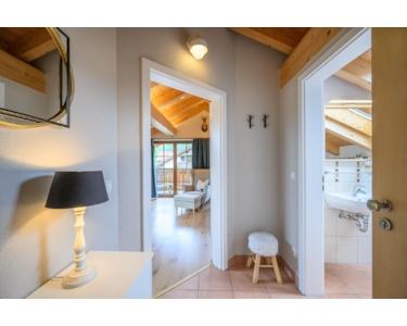 Die vier voll ausgestatteten (Ferien)Wohnungen des Hauses, erreichen Sie über einen hochwertig gestalten und überdachten Außenaufgang mit separater Haustüre und einem hellen Treppenhaus.