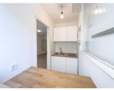 Die kürzlich renovierte Wohnung, in der sämtliche Räumlichkeiten – das Bad, die Küche, alle Böden sowie der Balkon – in neuem Glanz erstrahlen. Hochwertiges Laminat und elegante Fliesen wurden neu verlegt, und eine abgeschlossene Miniküche mit Fenster und Tür komplettiert das harmonische Ambiente.