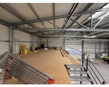 Konstruktionsart: Stahlbauweise mit Sandwichelementen (100 mm) zur Dach- und Fassadeneindeckung