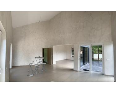 Das Haus mit zwei gegenläufigen Pultdächern ist massiv gebaut. Die Zimmer sind dank großer Fenster lichtdurchflutet. Dazu gibt es zwei große Terrassen und eine überdachte Loggia. Im Untergeschoß befindet sich ein Kellerraum, Hausanschlussraum/Hauswirtschaftsraum, daneben zwei Kinderzimmer mit großem Spieleflur und eigenem Duschbad. Diese Räume können natürlich auch für Hobby oder Home-Office genutzt werden.