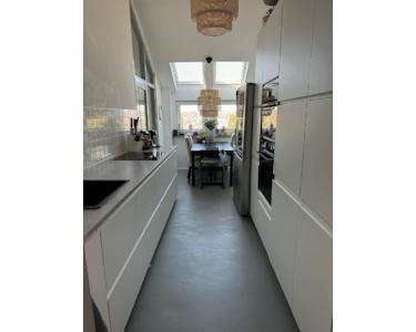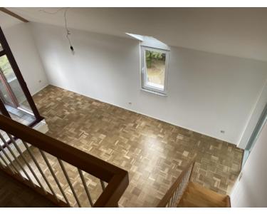 Die Wohnung wurde in 2021 umfangreich renoviert. Fast alle Fenster wurden erneuert. Die Wände wurden glatt verspachtelt, geschliffen und frisch gestrichen (weiß). Die Fußböden in der Küche und dem Gäste-WC wurden fugenlos verspachtelt (Betonoptik), in den übrigen Räumen liegt seidenmatt lackiertes Echtholz-Parkett. Badezimmer und Gäste-WC wurden modernisiert - sämtliche Sanitärelemente (Waschbecken, Toiletten, Armaturen, Duschabtrennung aus Glas) wurden vollständig erneuert.