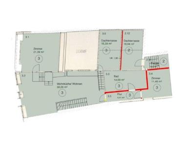Dachterrasse, Vollbad, Einbauküche, Parkett, Laminat, Fliesen