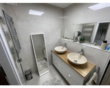 Zwei hochwertige Bäder verschönern morgens den Start in den Tag und bieten Entspannung am Abend in der Villeroy & Boch Whirl Wanne inkl. Massage Düsen.
