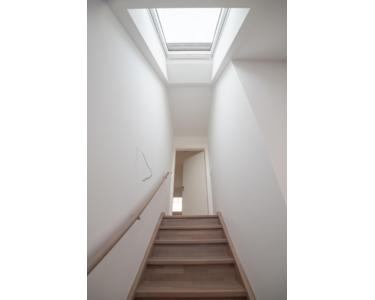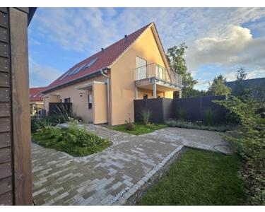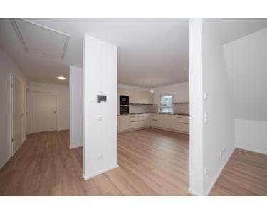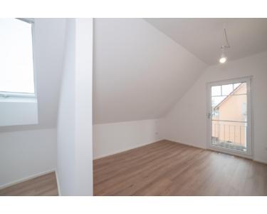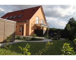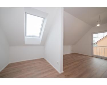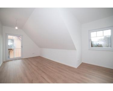 Die Wohnung hat 112m² Wohnfläche und wurde für Familien mit zwei Kindern oder Homeoffice oder nach Einbau Treppenlift für Senioren konzipiert. Sie liegt im 1. Obergeschoß eines neu gebauten Zweifamilienhauses mit großem Balkon und viel Stauraum auf dem ( unbeheizten ) Dachboden.
