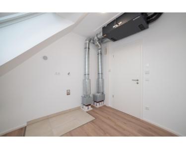 Eine Lüftungsanlage sorgt für geregelte Frischluft - mit über 90% Wärmerückgewinnung und Asthmatiker-freundlicher Luftfiltrierung.